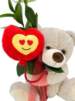 Osito Amoroso. es un muñeco en forma de gracioso Oso de peluche con una rosa natural, realizado con tejidos de primera calidad, apto para bebés ya que sus ojos no se pueden desprender, simpático y muy suave al tacto.