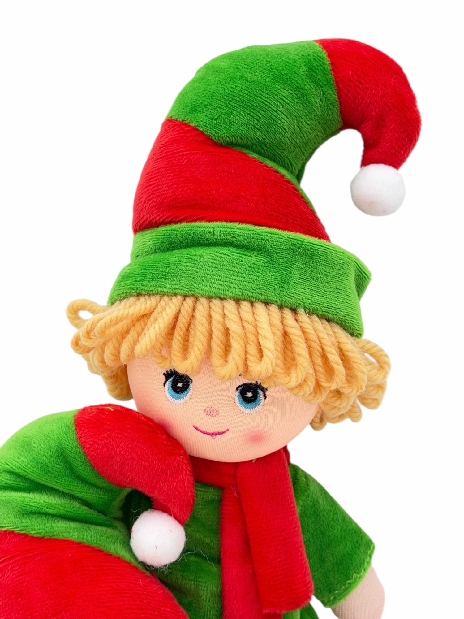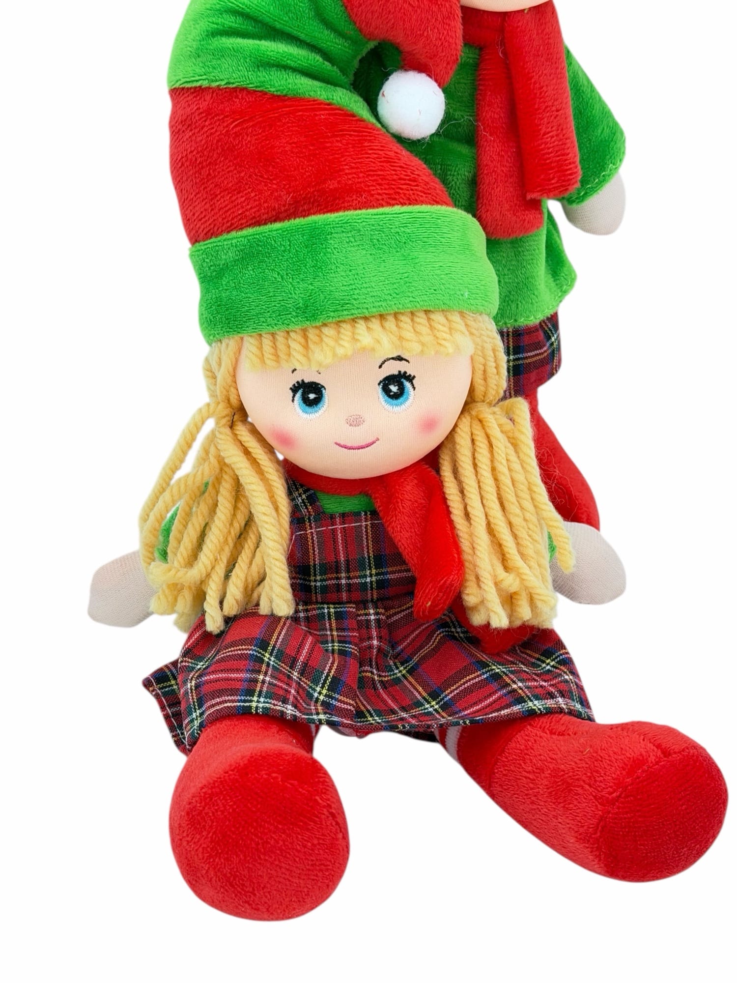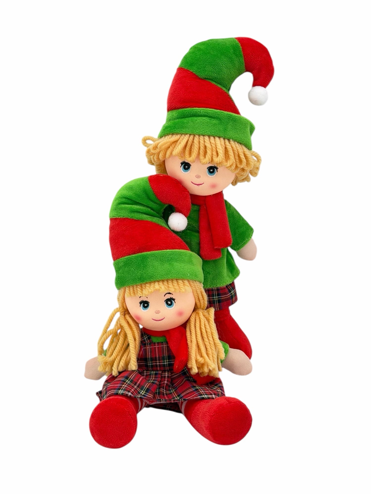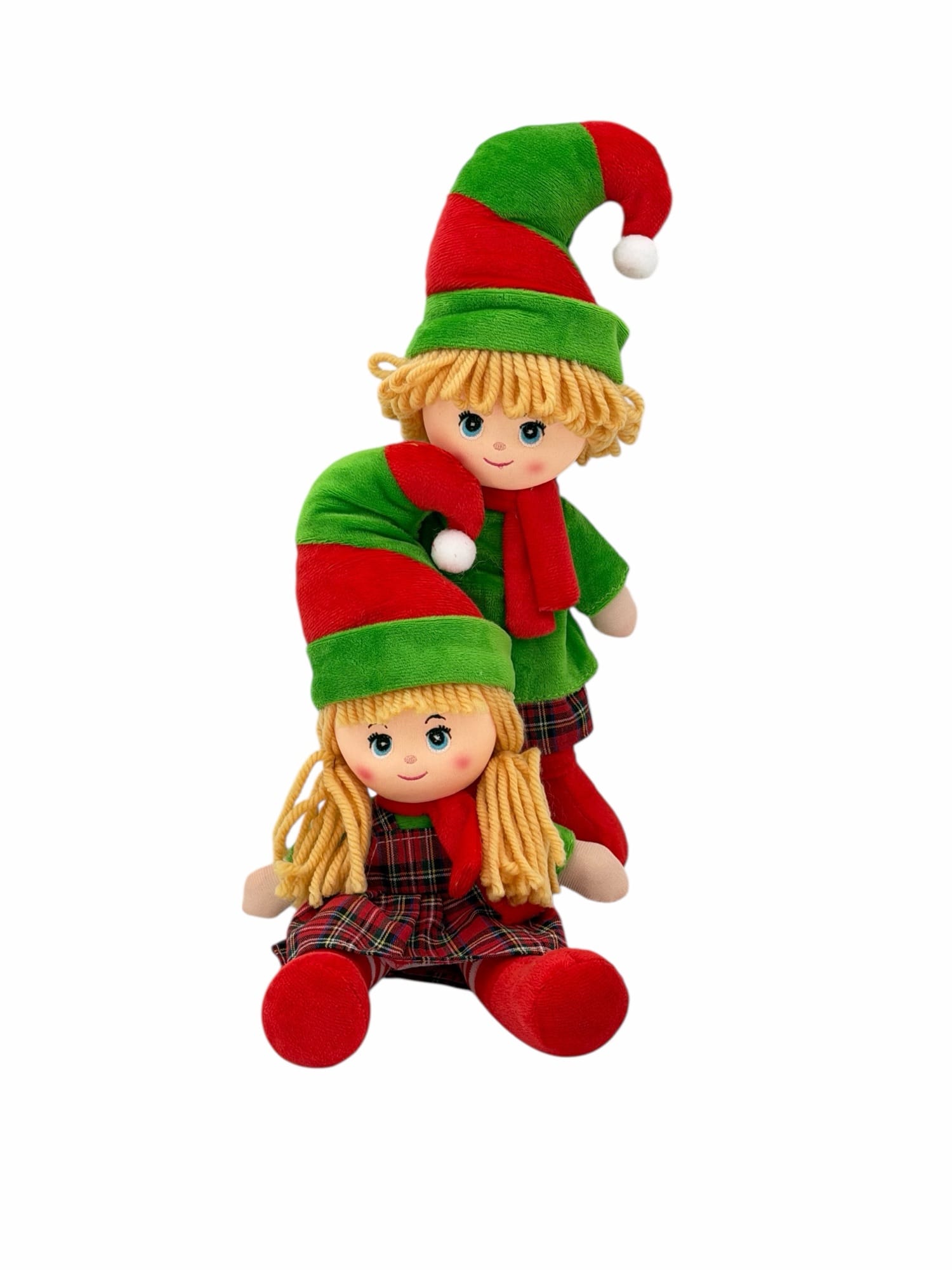Divertidísimos Elfo y Elfa de Navidad de peluche, realizado con tejidos de primera calidad, simpático y muy suave al tacto.