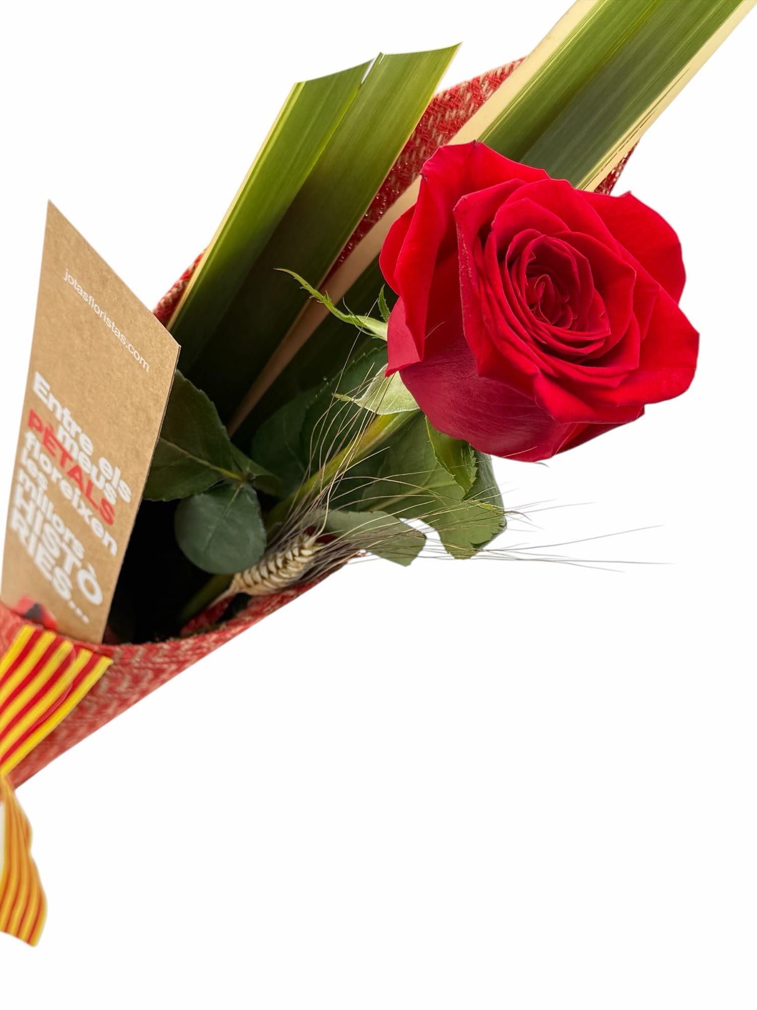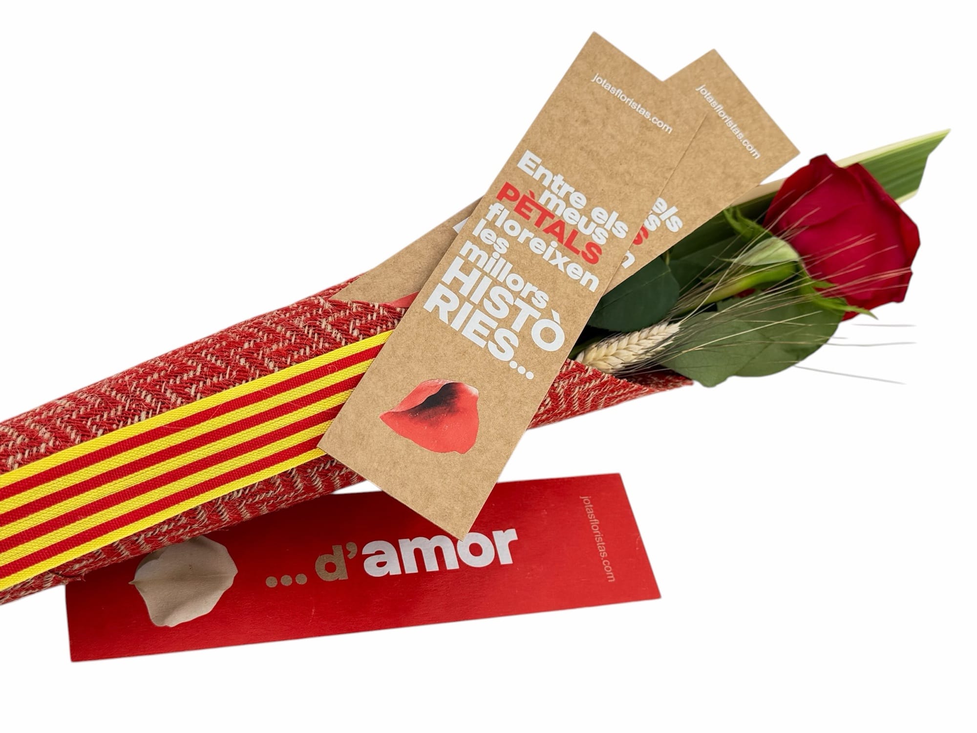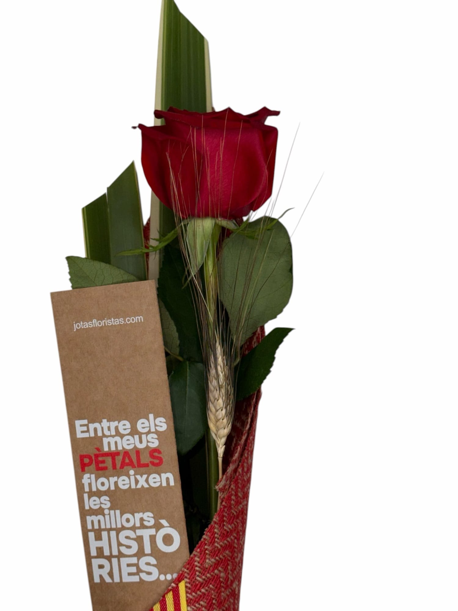 Rosa UNICA, 1 rosa especial Sant Jordi, rosa natural con espiga seca, punto de libro y arpillera natural la combinación perfecta que respeta el medio ambiente!
