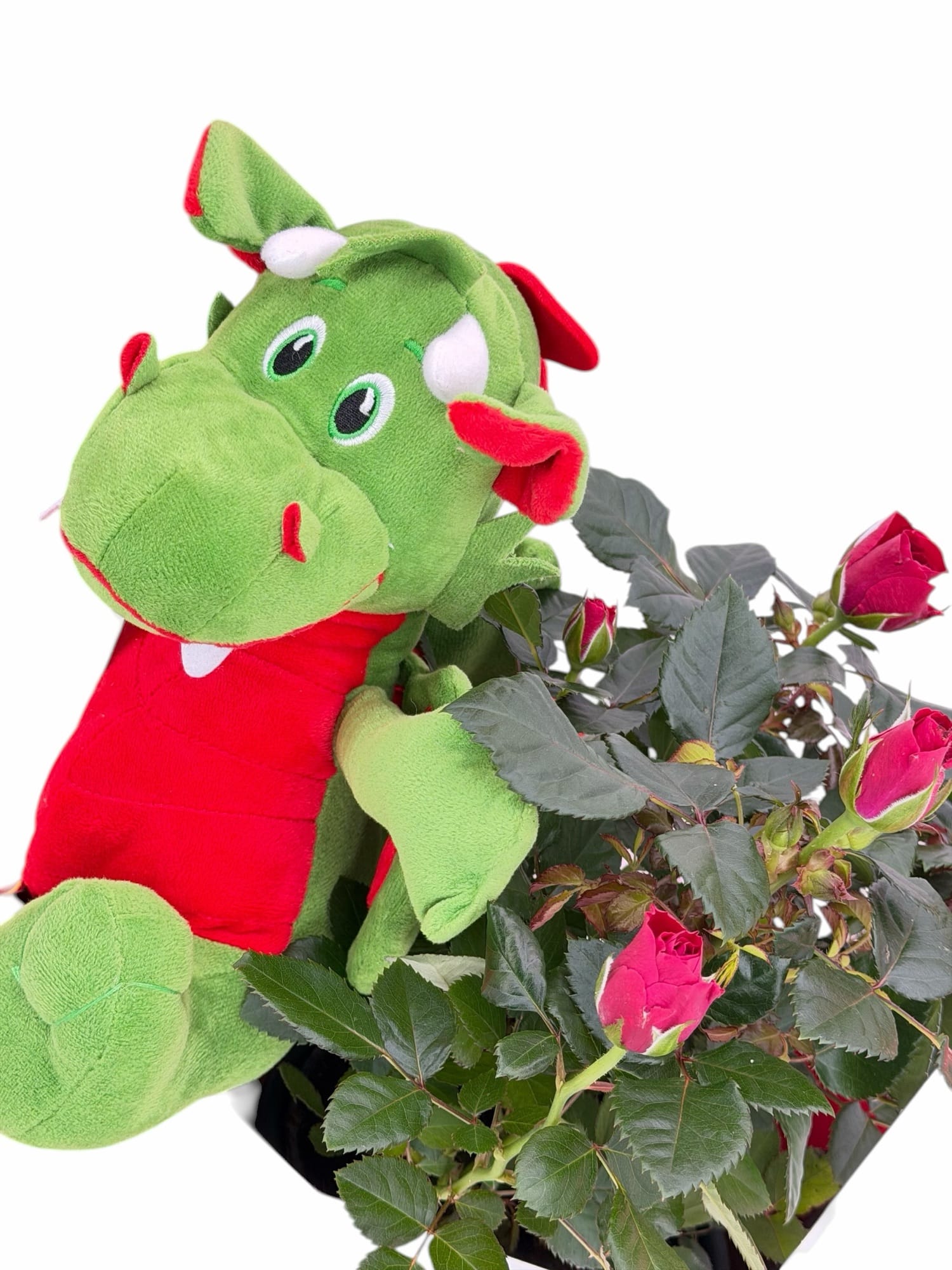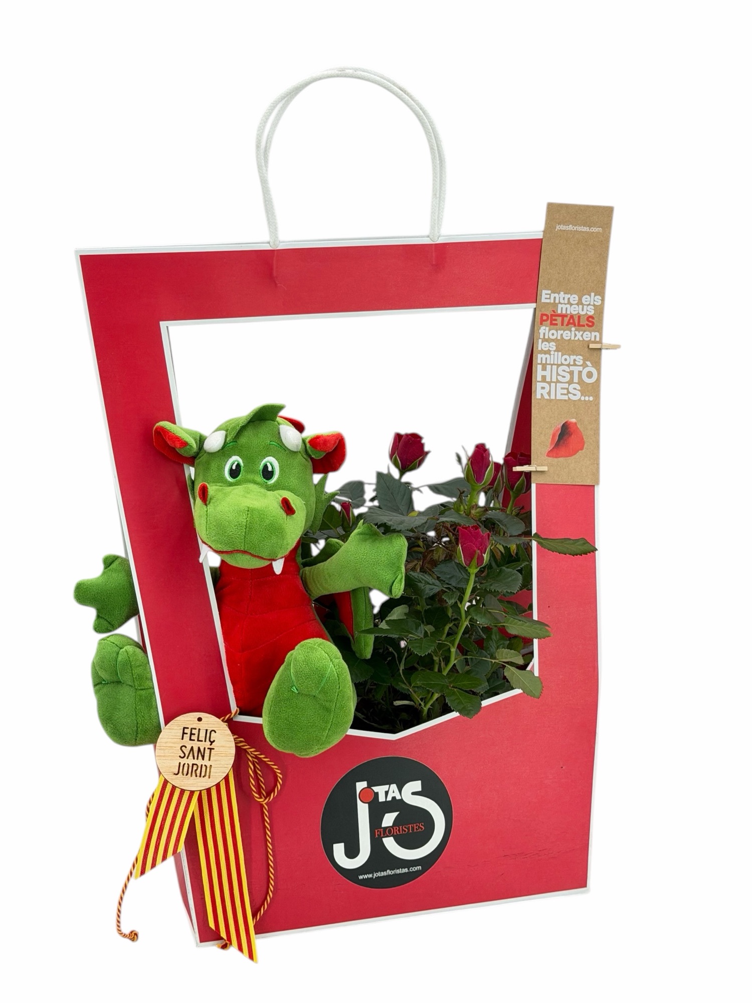 Caixa Lux, Caja con rosal de flores mini y Drac, la combinacion perfecta para este sant jordi.