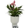 Planta muy fácil de cuidar, tan solo tienes que tener el recipiente siempre lleno de agua y ella misma la absorberá de la piedra volcánica porosa, es una planta de interior pero si esta en un sitio protegido del frío también se adapta al exterior, muy resistente y decorativa.