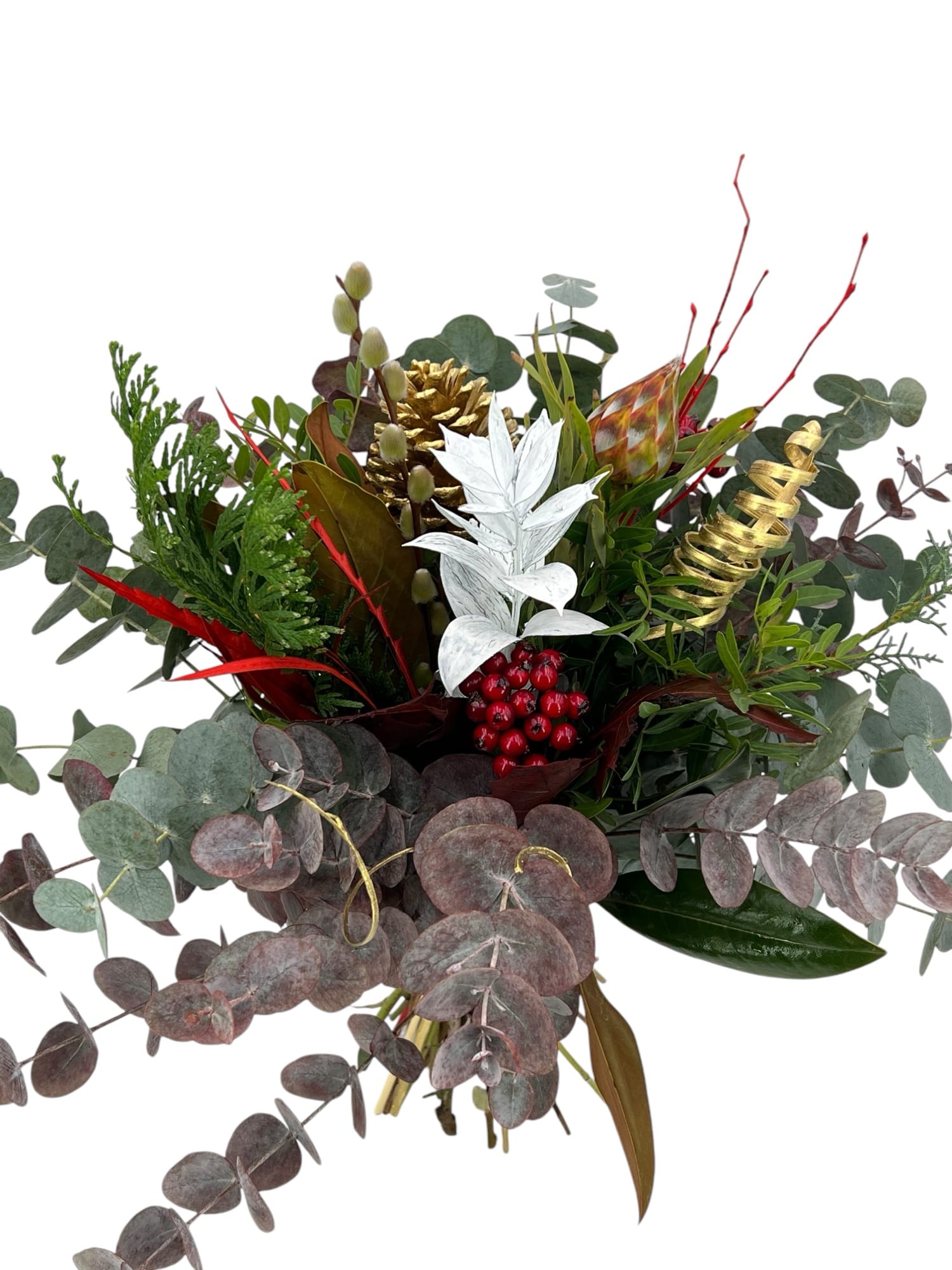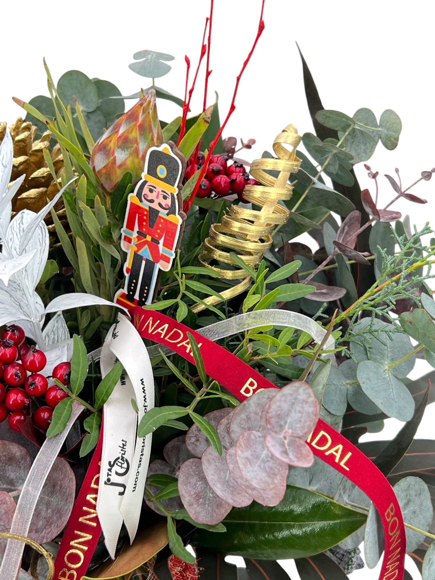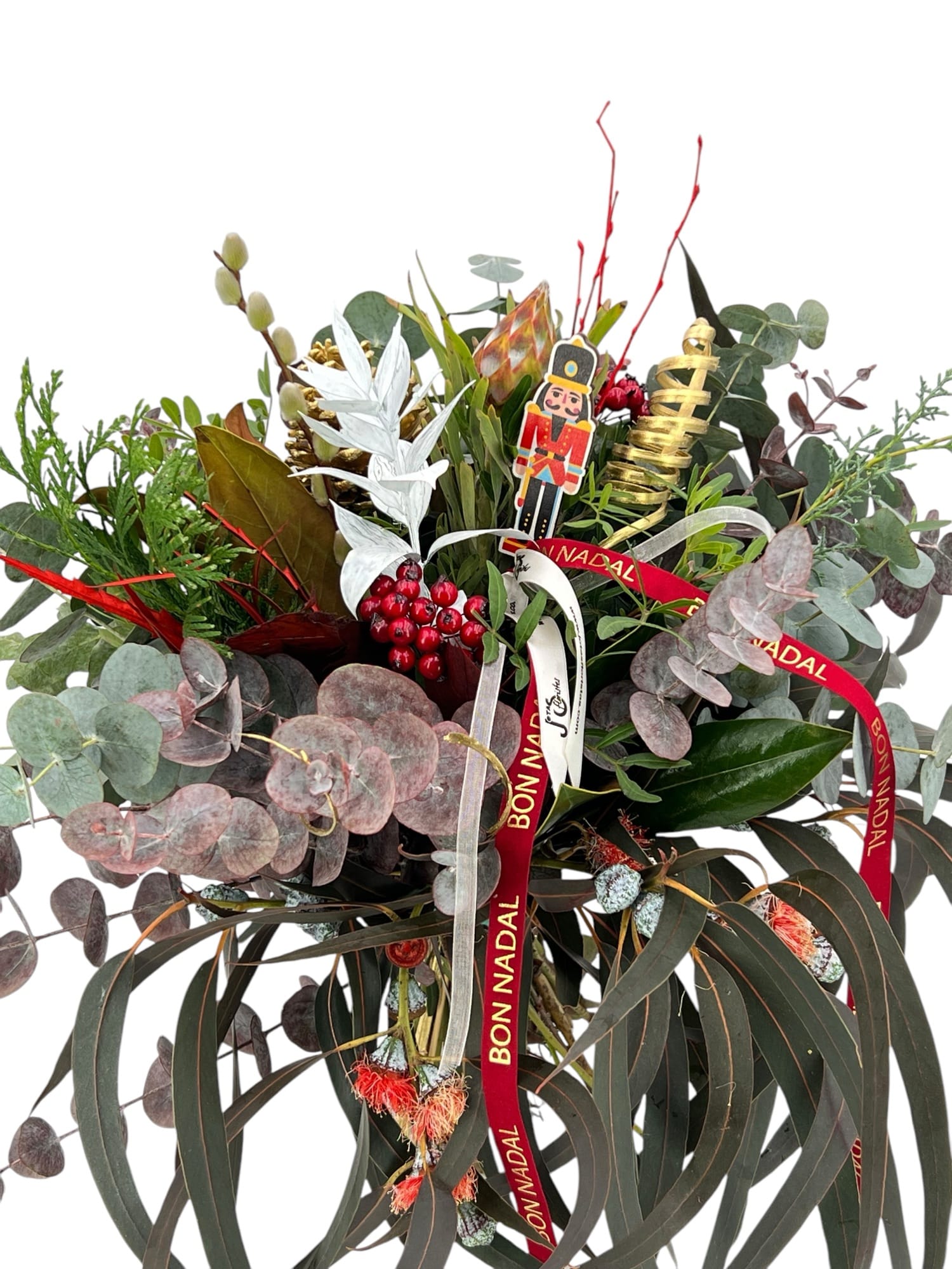 Ramo de Navidad, Confeccionamos tu ramo de verdes navideños, tu escoge tu presupuesto que tengas previsto en el desplegable y deja en nuestras manos la elección de los eucaliptos, verdes y elementos de tu ramo, no te defraudaremos con la elección!!, todos los ramos que realizamos van acompañados envoltorio con material respetuoso con el medio ambiente, además también pondremos una tarjetita con el mensaje personalizado que nos escribas en el formulario de pedido.