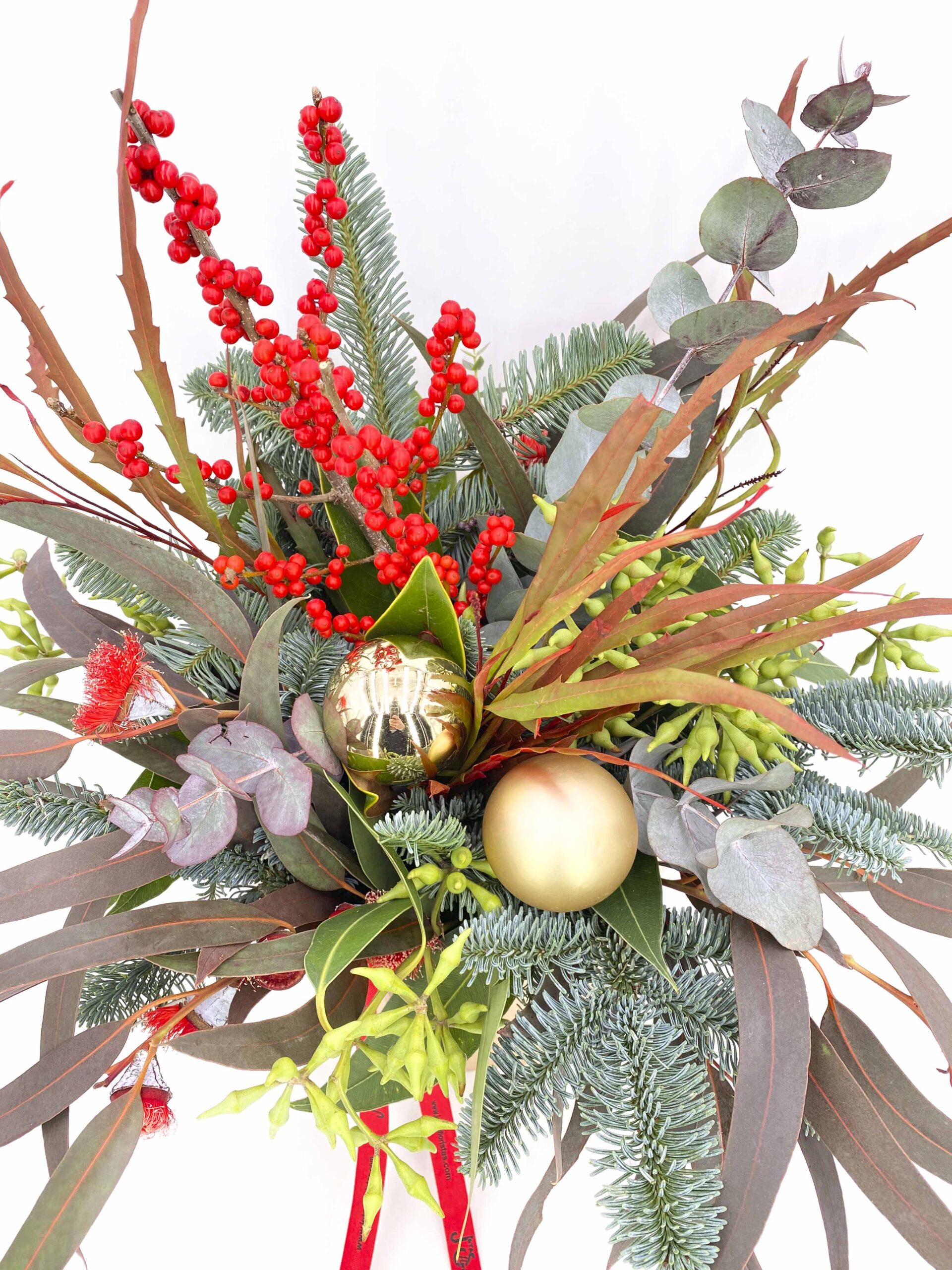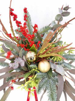 Todos nuestro ramos de verdes navideños van acompañados de la mejor selección de verdes de temporada y contienen agua tratada con floralife para una mejor conservación.