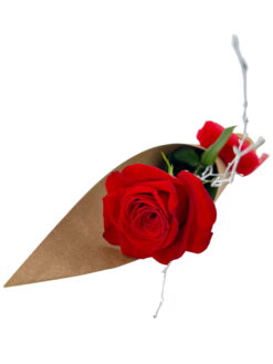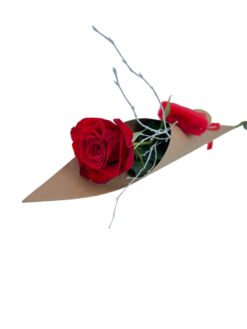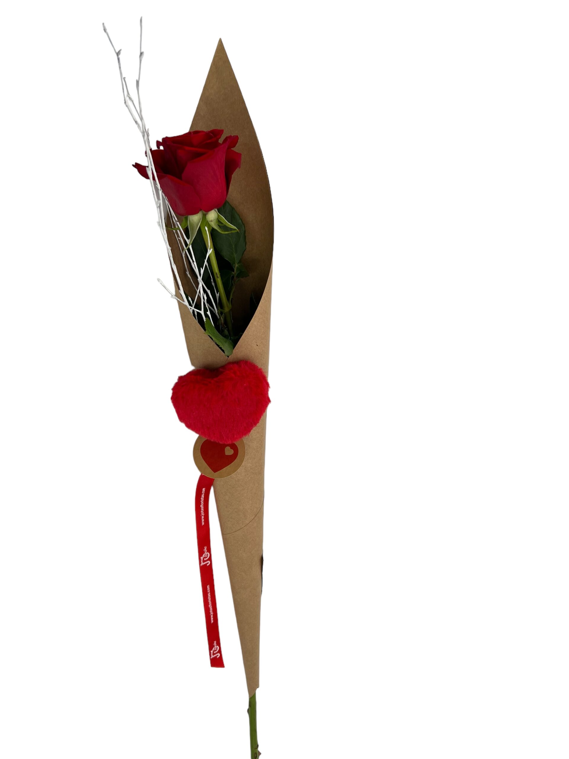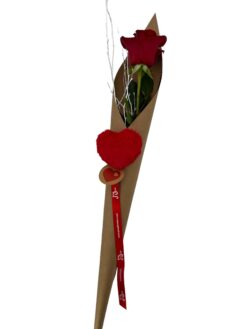 rosa amor Rosa Amor, 1 rosa natural con verdes y envoltorio especial acompañada de un corazón.