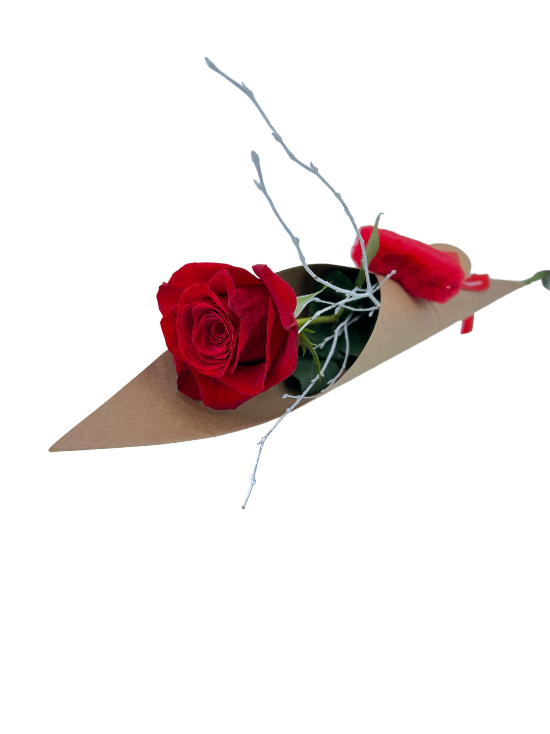 Rosa amor, 1 rosa natural con verdes y envoltorio especial San Valentín
