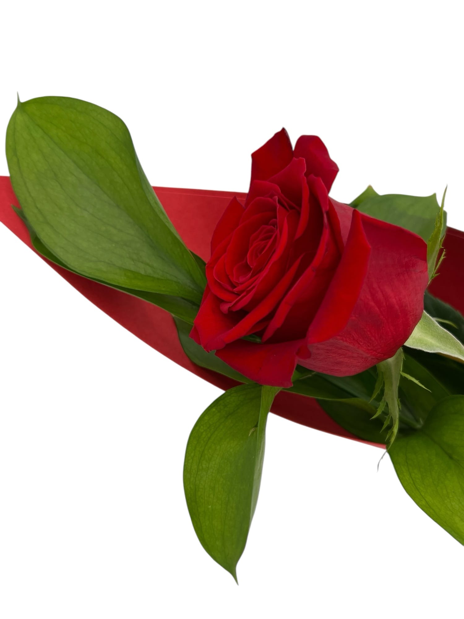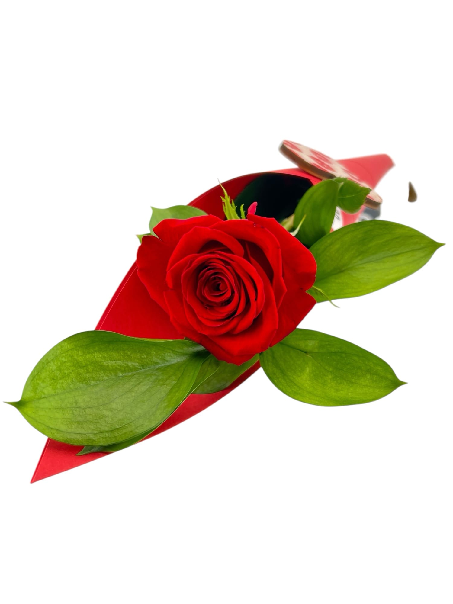 rosa amor Rosa Amor, 1 rosa natural con verdes y envoltorio especial acompañada de un corazón.